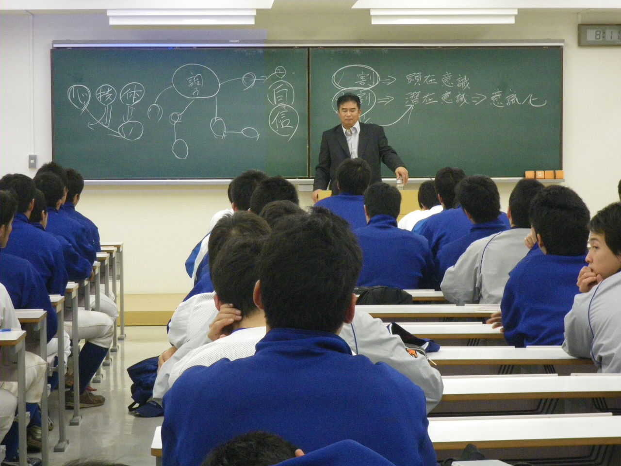 今日は17時から、古城監督を含め総勢120名の日体大野球部のメンタルトレーニングを含めた講演を大塚主任と行ってきました。